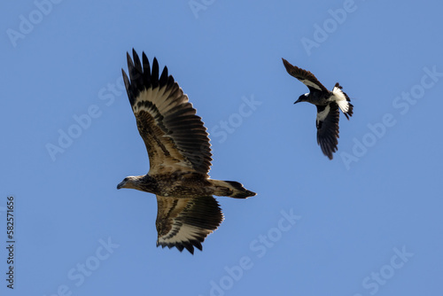 Obraz premium Australian Magpie chasing off a White-bellied Sea Eagle