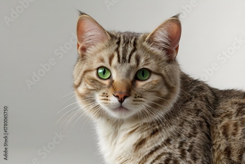 © 99Image , Obraz premium Australian Mist Cat with Spotted Coat and Green Eyes on White Background