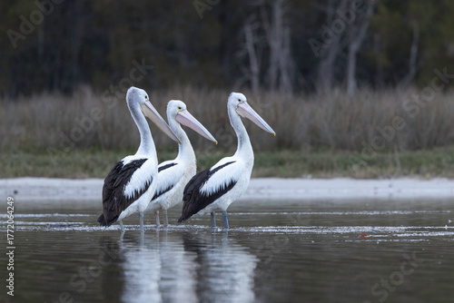 Naklejka premium Australian pelican (Pelecanus conspicillatus), Corunna Lake, NSW, August 2025