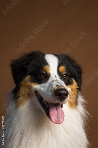 Fototapeta premium Australian Shepherd dog against brown studio background