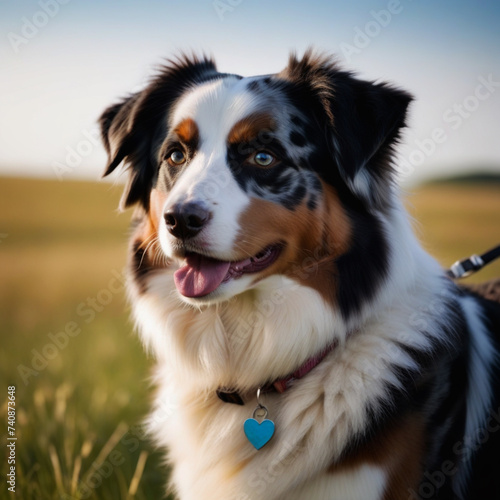 © HappymanPhotography, Fototapeta premium Australian Shepherd dog poses with his whole body in nature