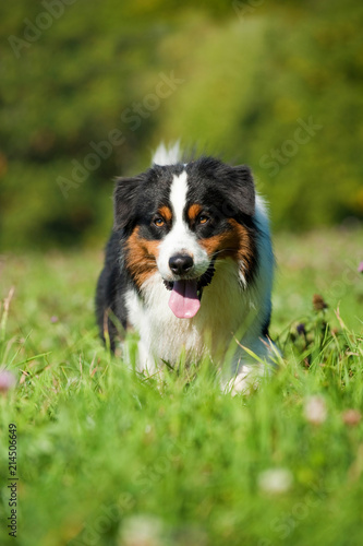 © DoraZett, Fototapeta premium Australian Shepherd in einer Blumenwiese