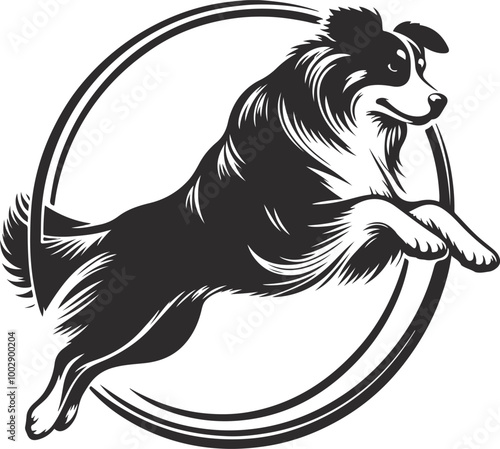 Obraz premium Australian Shepherd silhouette, illustration white background