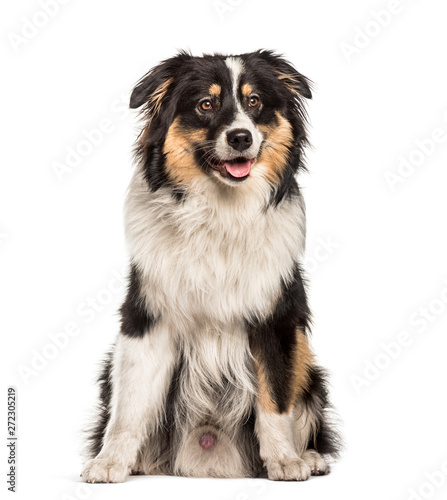 Obraz premium Australian Shepherd sitting against white background