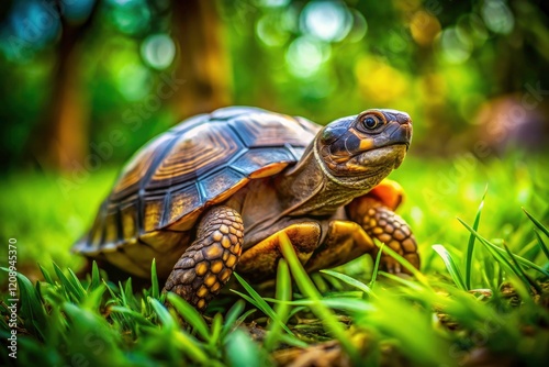 © kansak01, Obraz premium Australian Turtle on Grass, Slow Tortoise, Wildlife Photography, Zoo Animal, Reptile, Nature Image