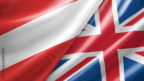 © Nina, Fototapeta premium Austria and United Kingdom two national flags filling the entire frame, close-up view, edge-to-edge composition