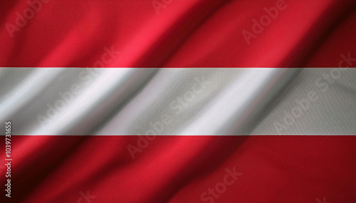 © Saddha Visual, Fototapeta premium Austria flag waving in the wind. Close up of Austria banner blowing, soft and smooth silk. Cloth fabric texture ensign background. Use it for national day and country occasions concept