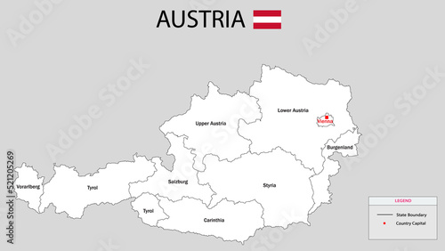 Obraz premium Austria Map. Austria Map with white background and all states names.