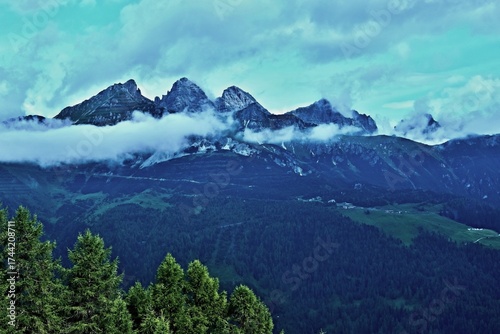Naklejka premium Austrian Alps - view of the Stubai Valley and upper station of the Elfer...
