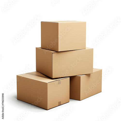 © Agung, Fototapeta premium Authentic Cardboard Box Warehouse Mockup with Realistic Lighting on White Background