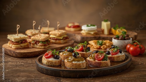 Fototapeta premium Authentic Mediterranean tapas selection for lunchtime, bite-sized sandwiches...