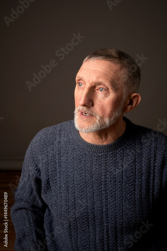 Obraz premium Authentic studio portrait of a handsome older man, selective focus.