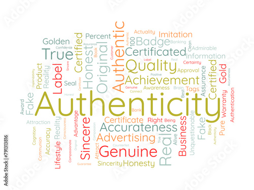 © Rana, Fototapeta premium Authenticity word cloud template. Certified concept vector background.