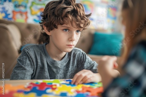 © Milos, Fototapeta premium Autistic Child Engaged in Therapy Session