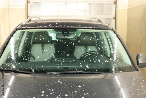 © New Africa, Obraz premium Auto covered with cleaning foam at car wash, closeup