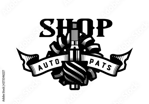 Fototapeta premium Auto parts store, car logo emblem. Vector illustration.