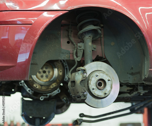 © vschlichting, Naklejka premium Auto Reparatur auf einer Hebebühne