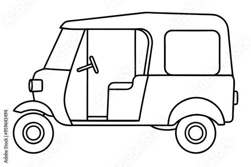 Fototapeta premium Auto Rickshaw line art drawing, Classic auto rickshaw outline vector