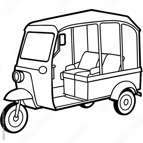 Obraz premium Auto Rickshaw outline illustration digital coloring book page line art drawing