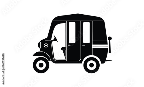 Fototapeta premium Auto rickshaw vector silhouette, Auto Rickshaw line art drawing, Classic auto...