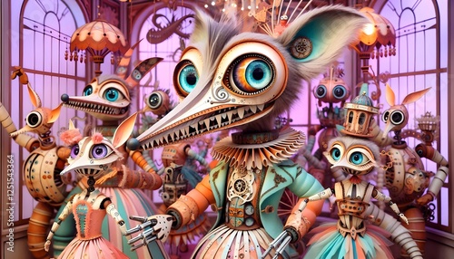 Naklejka premium Autómatas de Papel: Fantasía Mecánica y Arte Quilling