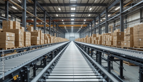 Fototapeta premium Automated conveyor system in a distribution warehouse