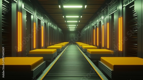 © Yuparet, Obraz premium Automated Conveyor System with Moving Belts in a Modern Industrial Environment