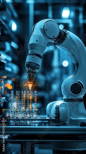 © zulie, Fototapeta premium Automated robotic arm welding in a factory