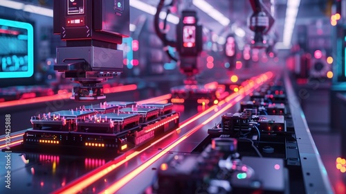 © Fana Art, Obraz premium Automated robotic assembly line manufacturing computer components.