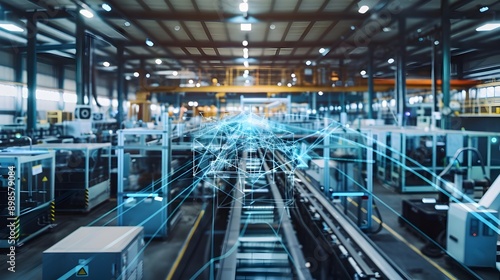Fototapeta premium Automated Smart Factory with Interconnected Mesh Technology