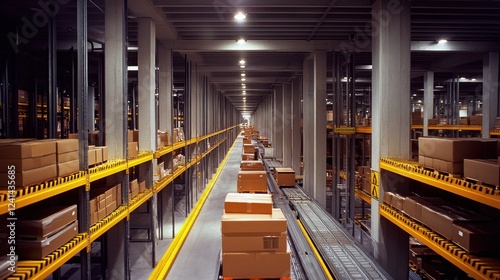 © STwul, Obraz premium Automated warehouse conveyor system transporting packages