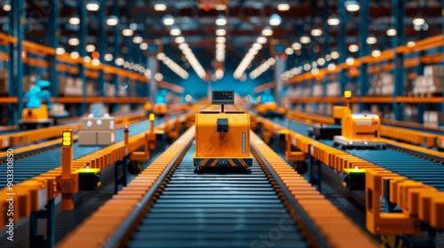 Fototapeta premium Automated warehouse with conveyor belts and sorting systems, illustrating the...