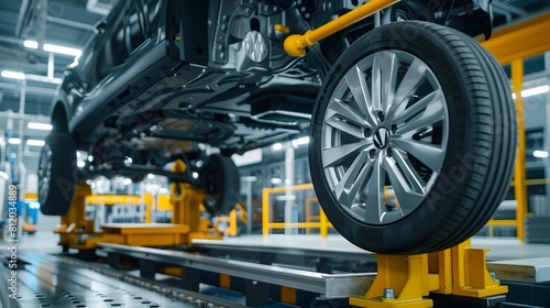 © pkproject, Fototapeta premium Automated Wheel Durability Testing in Industrial Manufacturing Environment