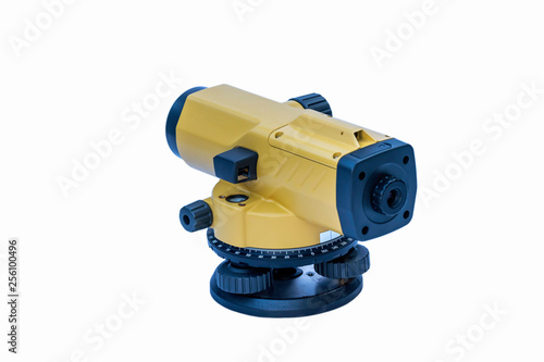 Fototapeta premium Automatic level On a white background,Auto level,Level camera,Survey of road level,Survey work for construction