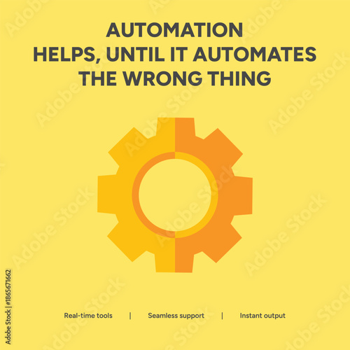 © Design, Fototapeta premium Automation Risk Conceptual Illustration Featuring a Gear Icon and Text About Automating the Wrong Business Processes