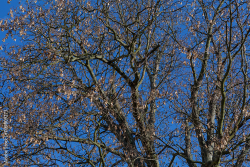 Obraz premium Automn tree branches against blue sky