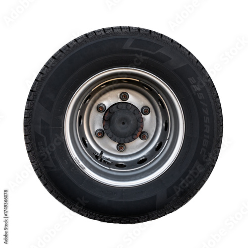 © Aliaksandr, Fototapeta premium Automobile wheel isolated on white background, ideal for automotive design, service, repair, and transportation concepts. Isolated on transparent background.