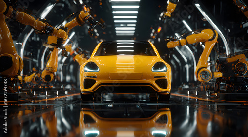 © lele, Fototapeta premium Automotive Automation Assembly Workshop