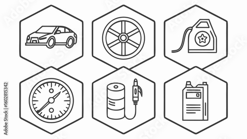 Fototapeta premium Automotive Icon Set in Asphalt Black for Vehicles, Transport, and Car Service...