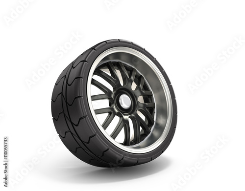© nosorogua, Obraz premium automotive wheel isolated on white 3d render