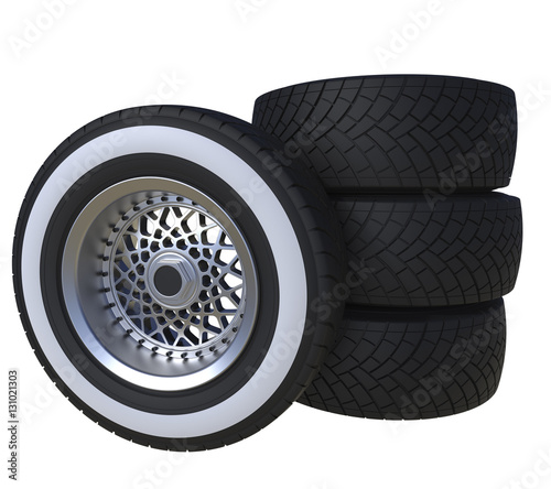 © gorbovoi81, Obraz premium Automotive wheels isolated on white. 3D render