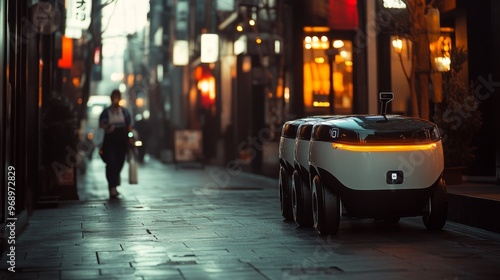 Fototapeta premium Autonomous AI-driven personal delivery robots navigating sidewalks:...