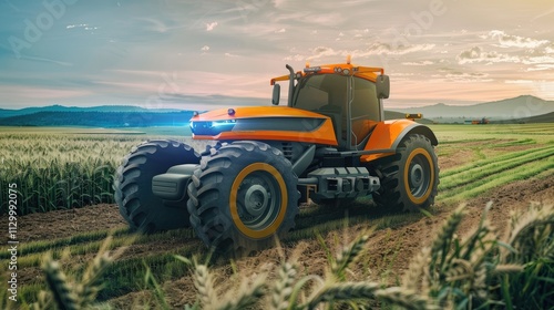 Obraz premium Autonomous tractors using 5G networks for precise navigation and efficient...