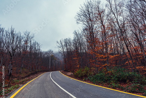 © Vastram, Fototapeta premium Autostrada w jesiennym lesie górskim
