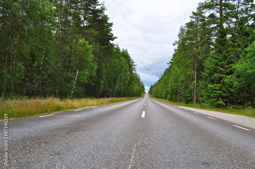 Fototapeta premium Autostrasse durch den Wald von Schweden
