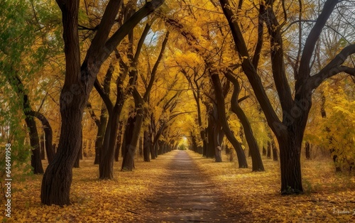 Fototapeta premium Autumn alley .tree alley in the park in autumn time. AI, Generative AI
