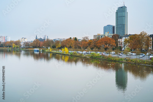 © Igor, Naklejka premium Autumn and river water in Offenbach am Main harbor, Hesse.