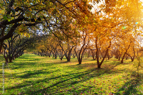 Naklejka premium autumn and yellow maple leaves in the park in Kolomenskoye park in autumn...