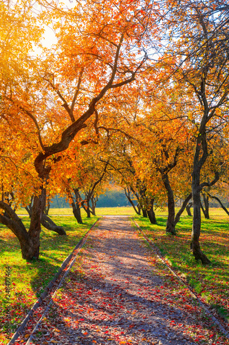 Naklejka premium autumn and yellow maple leaves in the park in Kolomenskoye park in autumn...