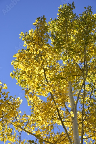 © Kat Kavanagh, Fototapeta premium autumn aspen leaves against blue sky